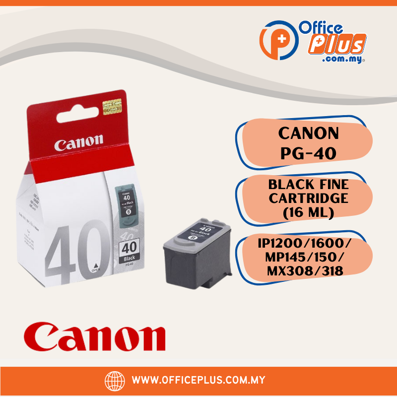 The genuine Canon PG-40 Pigment Black Ink Cartridge is easy to install and delivers high quality and durability all at once. Print crisp, smudge-resistant, professional quality text. Designed with FINE (Full Photolithographic Inkjet Nozzle Engineering) technology, your documents will realize added sharpness, detail and quality.