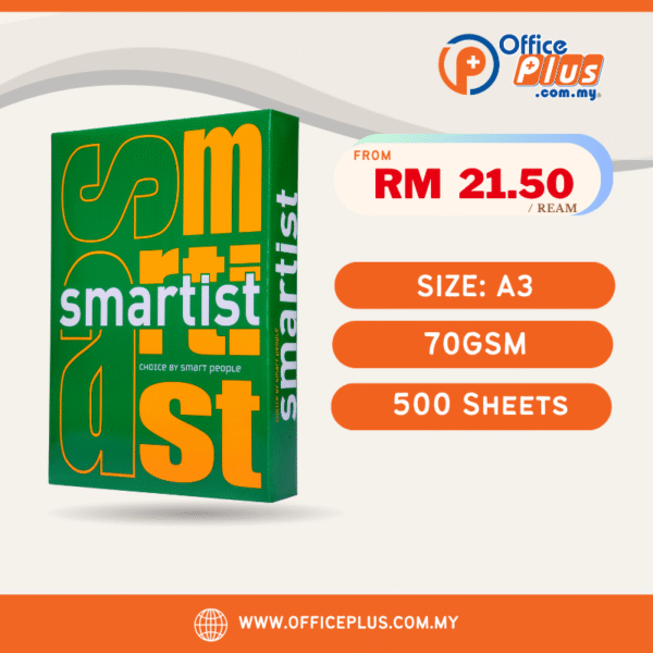 Shop online today at officeplus.com.my and enjoy FREE delivery with a minimum order of [Smartist A3 Copier Paper 70gsm 500 sheets] across Malaysia.