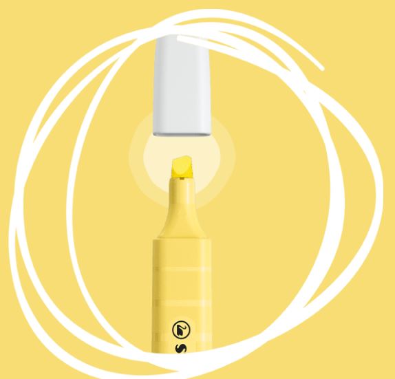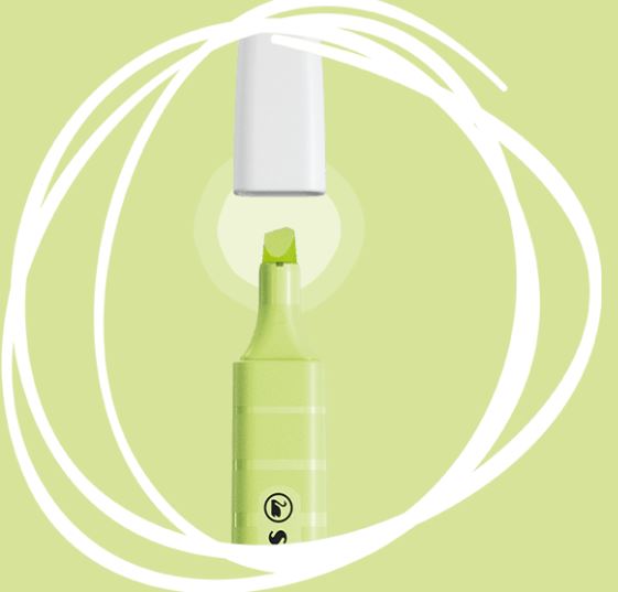 - 2 line widths: 1 mm and 4 mm – the thick 4 mm edge is perfect for quick highlights over blocks of text, while the smaller 1 mm edge is excellent for underlining important individual words.